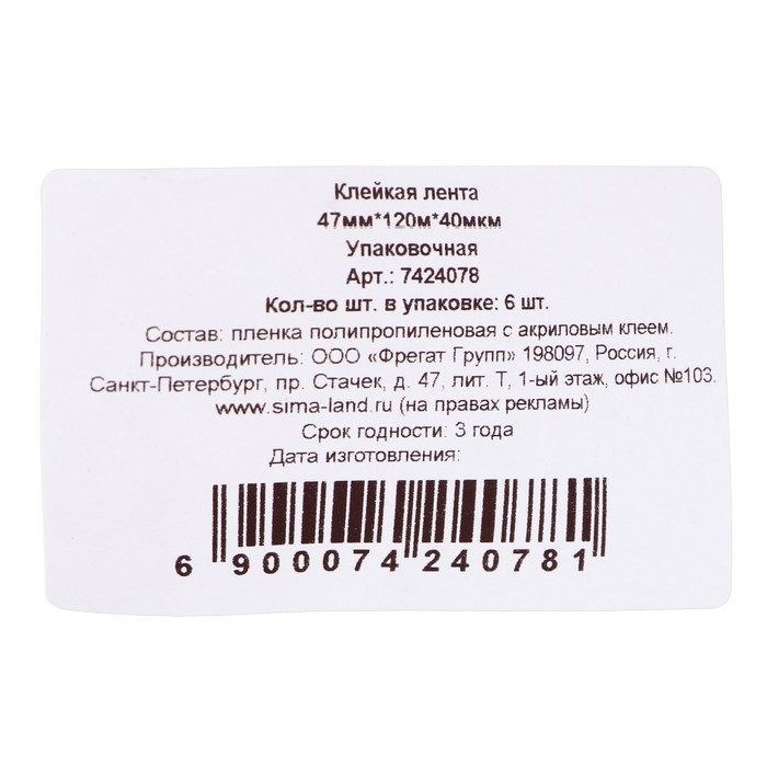Клейкая лента "Мой выбор", упаковочная, 47 мм х 120 м, 40 мкм