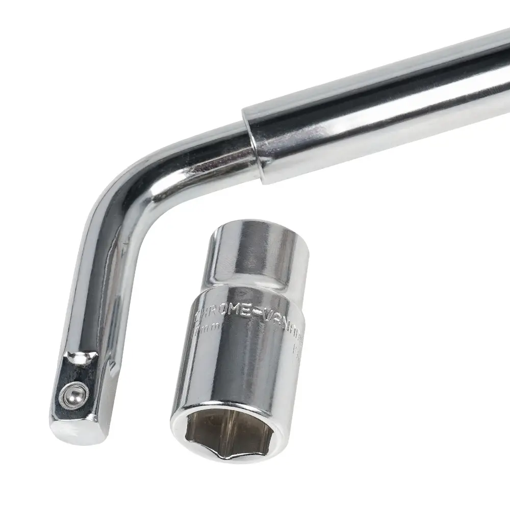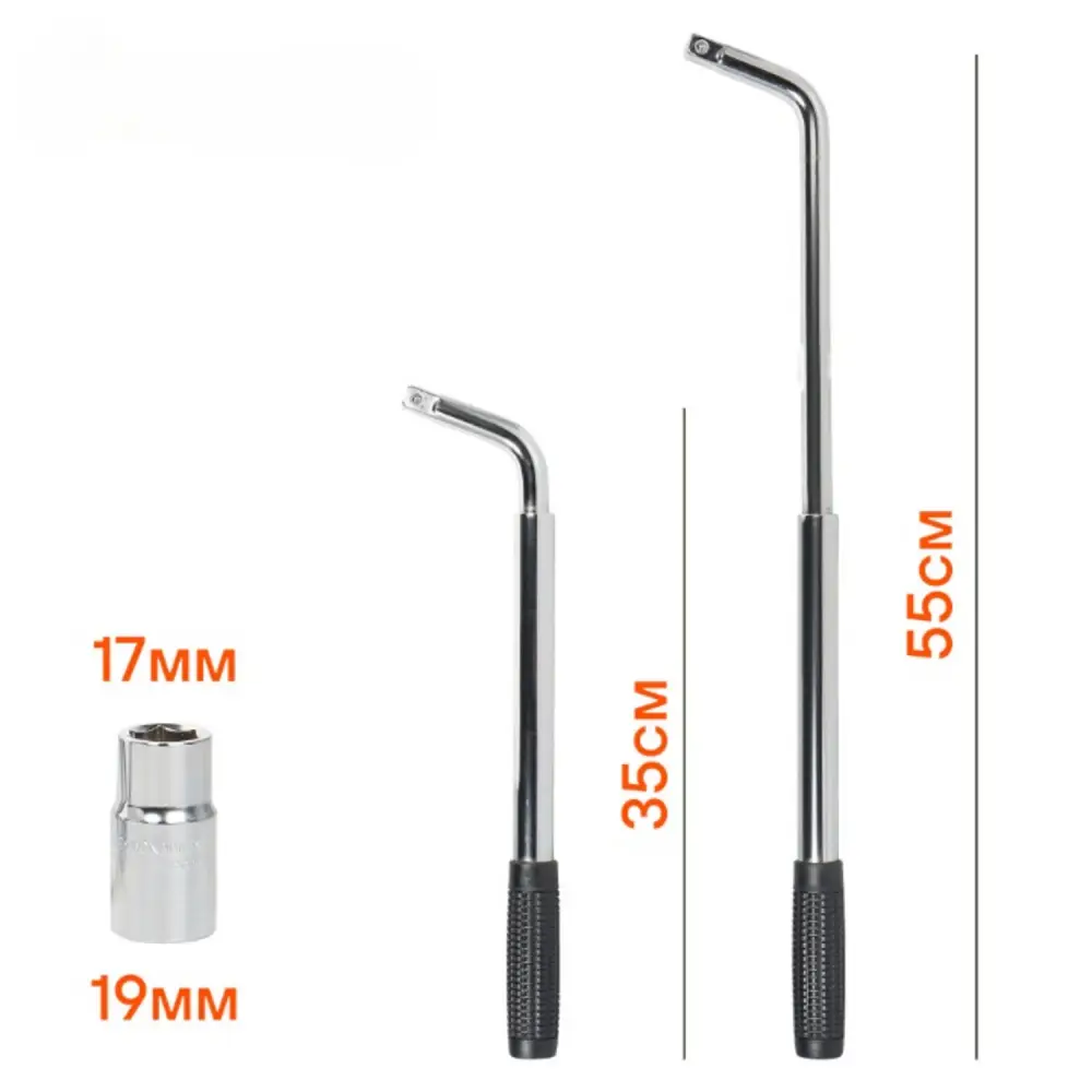 Ключ баллонный телескопический изготовлен из высокопрочной стали. Предназначен для монтажа/демонтажа резьбовых соединений при замене колес на легковых автомобилях. Универсальность данного баллонного ключа заключается в наличии нескольких размеров, тем самым позволяя использовать его с большим количеством колесного крепежа. Также он оснащен телескопическим механизмом, что позволяет увеличть рычаг и прилагаемое к нему усилие. Абсолютно все баллонные ключи производятся по единой технологии на современных автоматизированных предприятиях. Тестирование каждого ключа происходит в собственной испытательной лаборатории в два этапа, что является залогом качества и надежности.
