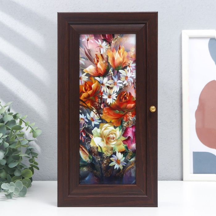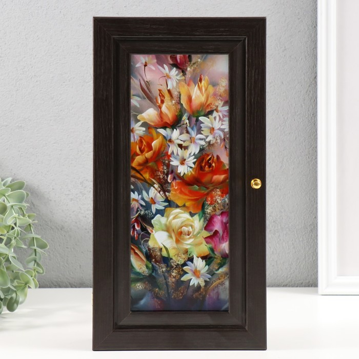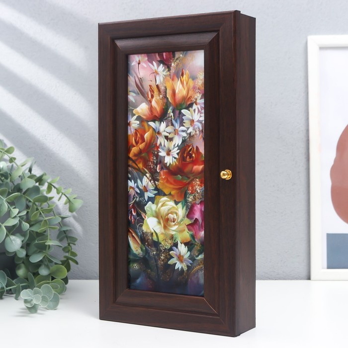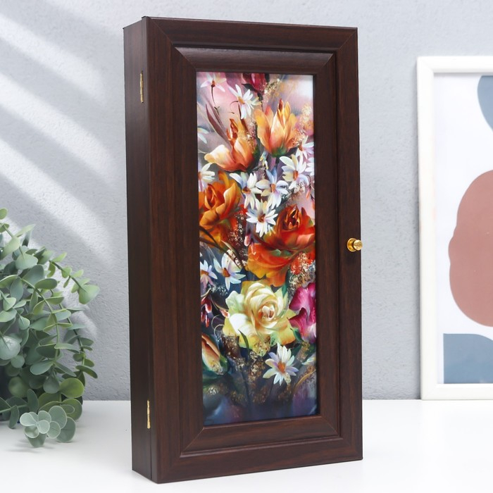 Ключница "Цветочная композиция" венге 16х31 см МИКС