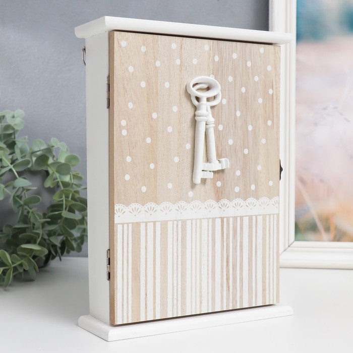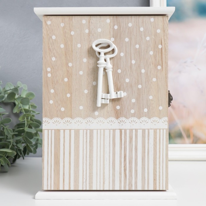 Ключница дерево 5 крючков "Ключи и горошек" 26х19х6 см