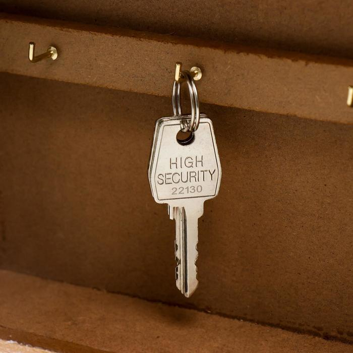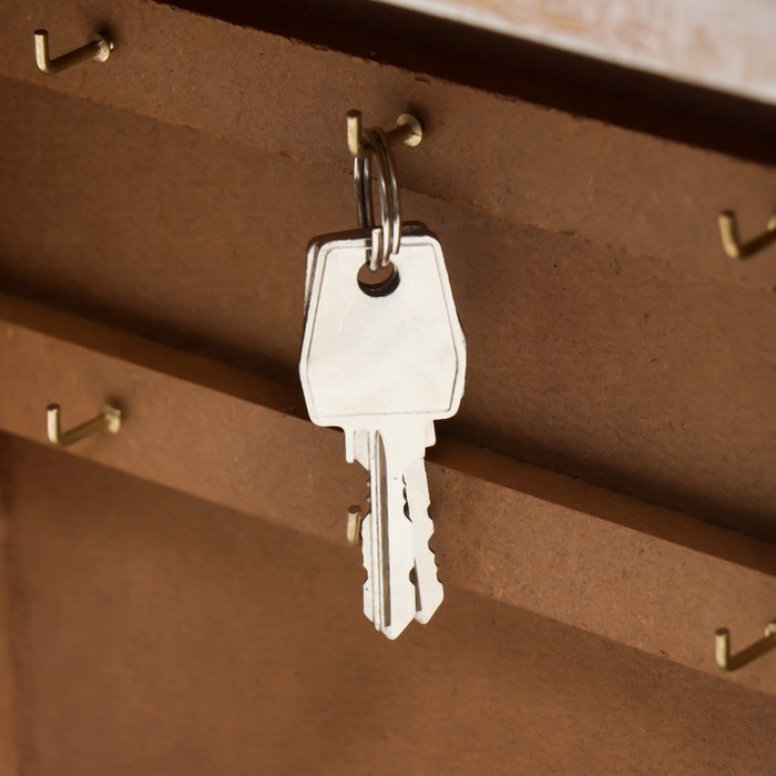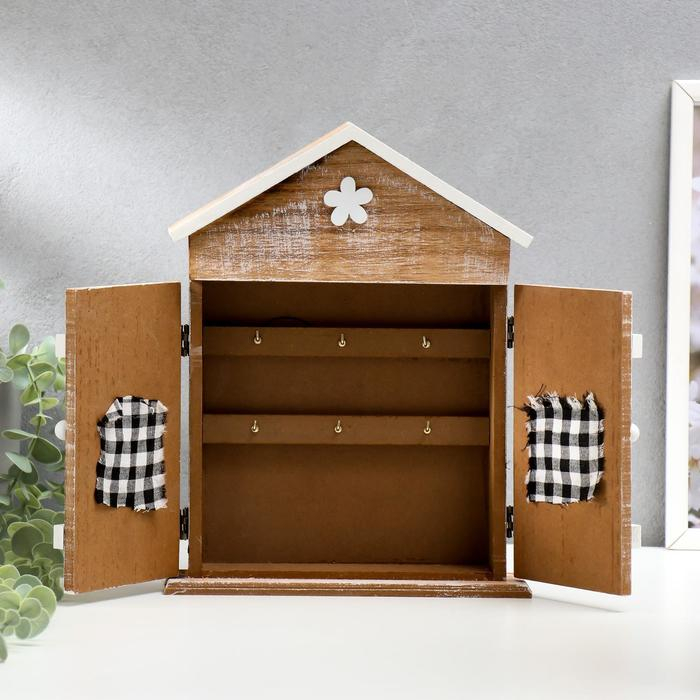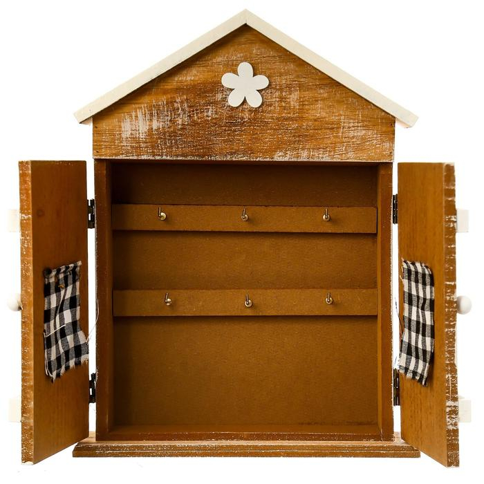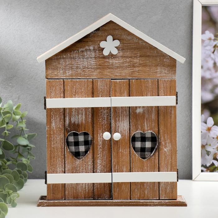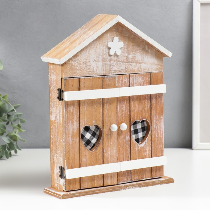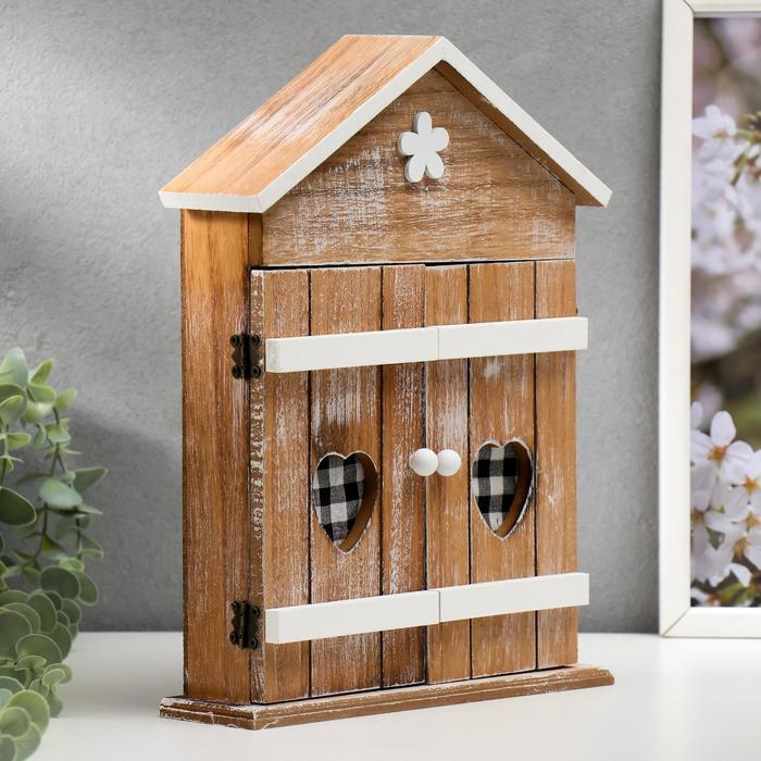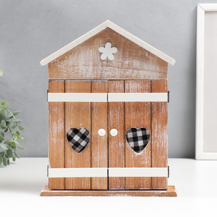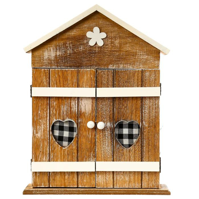 Ключница дерево 6 крючков "Дом со ставнями-сердечками" 29,5х22,5х6 см