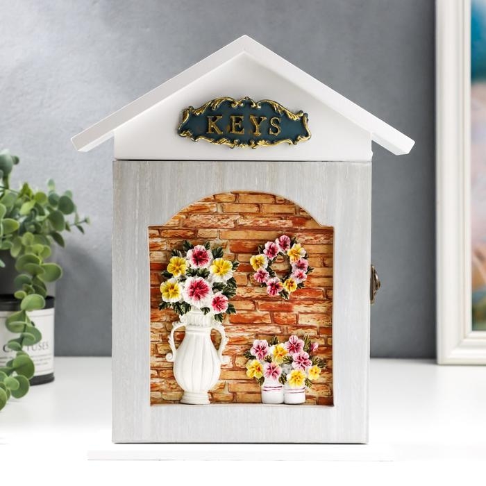 Ключница дерево 6 крючков "Плюмерии" 28х22х6,3 см