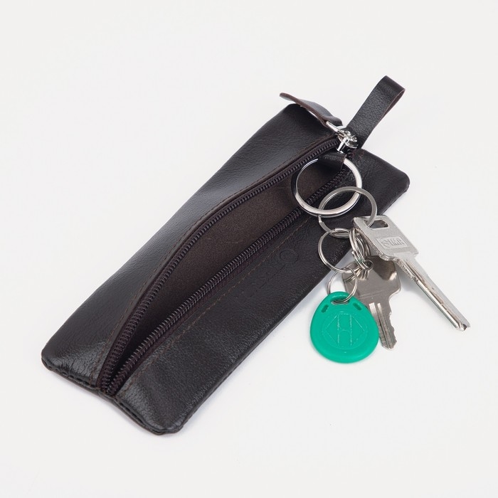 Ключница на молнии TEXTURA, длина 17 см, кольцо, цвет коричневый