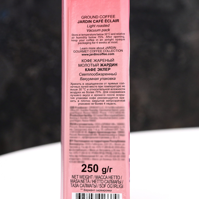 Кофе молотый Jardin Eclair - это Gourmet-бленд отобранных зерен арабики из Колумбии, Бразилии и Гондураса. Легкая обжарка этого мягкого Gourmet-бленда наполняет глубокий вкус кофе нежными бисквитными нотами и изысканным ароматом.