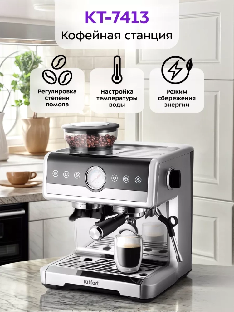 Кофейная станция кофеварка электрическая КТ-7413 - 2250 Вт