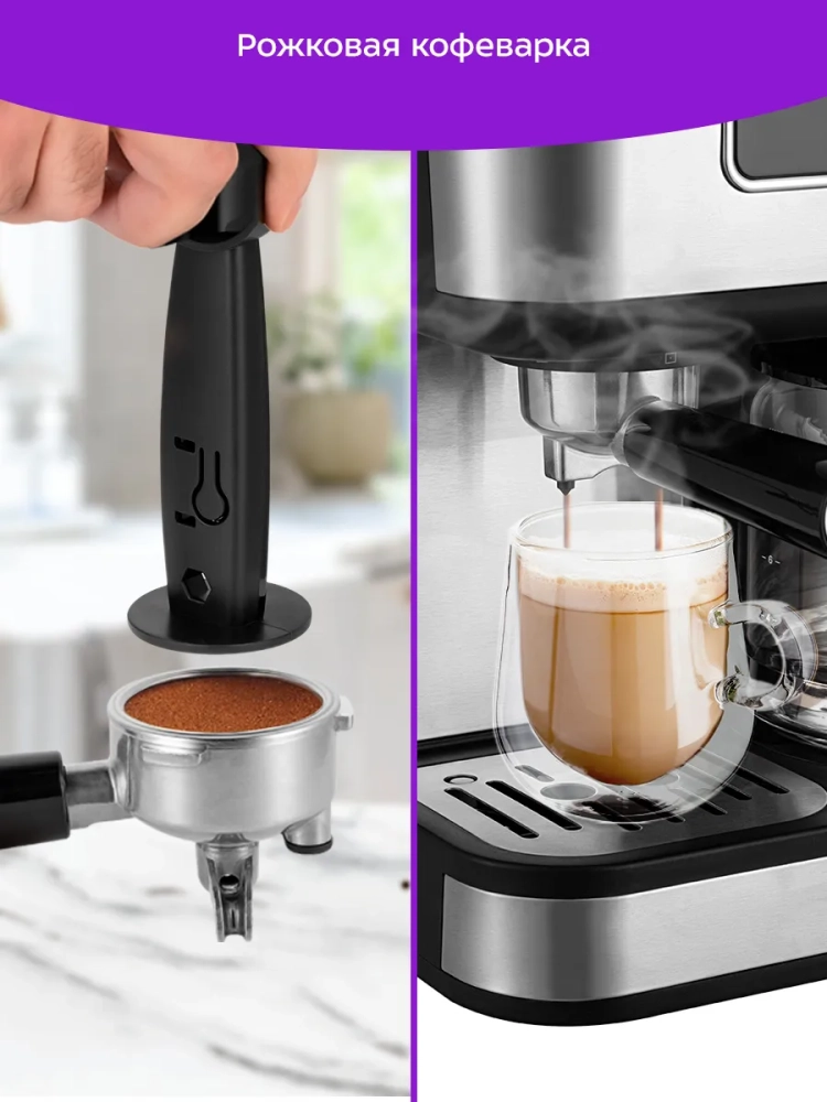 Кофейная станция кофеварка рожковая капельная КТ-7524 1800Вт