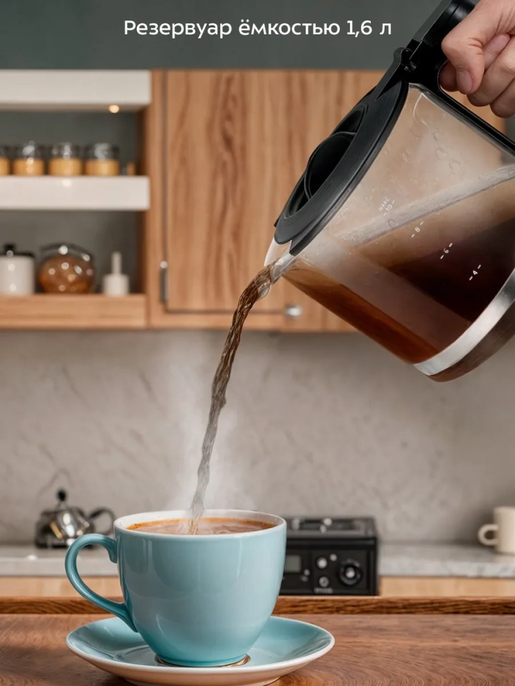 Эта автоматическая кофемашина оснащена капучинатором, что позволяет легко приготовить молочные напитки. Система противокапельной защиты обеспечивает чистоту на кухне, а функция автоотключения гарантирует безопасность использования. Резервуар для воды объёмом 1,6 литра позволяет приготовить до 10 порций кофе за один раз, что делает её идеальной для больших семей или офисов.