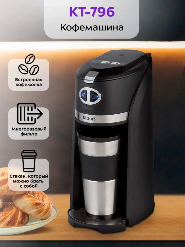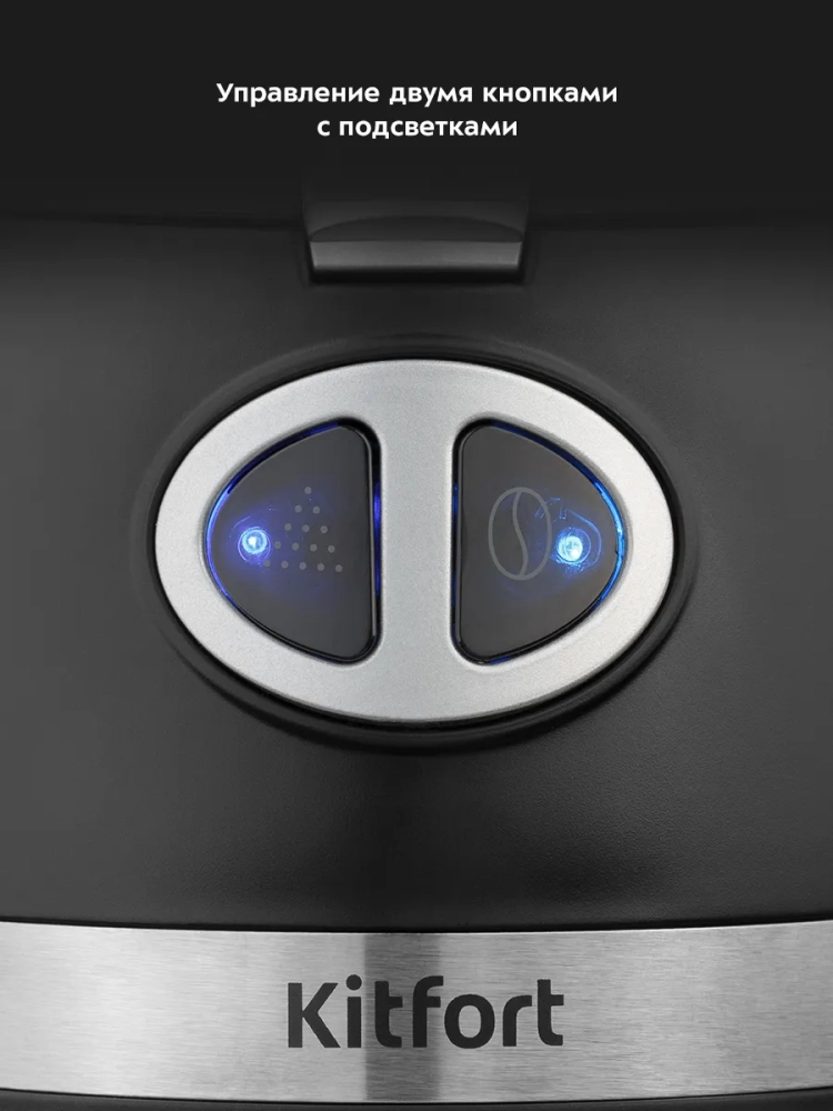 Эта электрическая техника оснащена панелью управления с двумя кнопками с подсветкой, что делает её использование интуитивно понятным. Поддон для сбора капель защищает поверхность стола от загрязнений. Кофемашина Kitfort КТ-796 — это надежная бытовая техника для приготовления кофе дома или в офисе, обеспечивающая высокое качество и удобство использования.