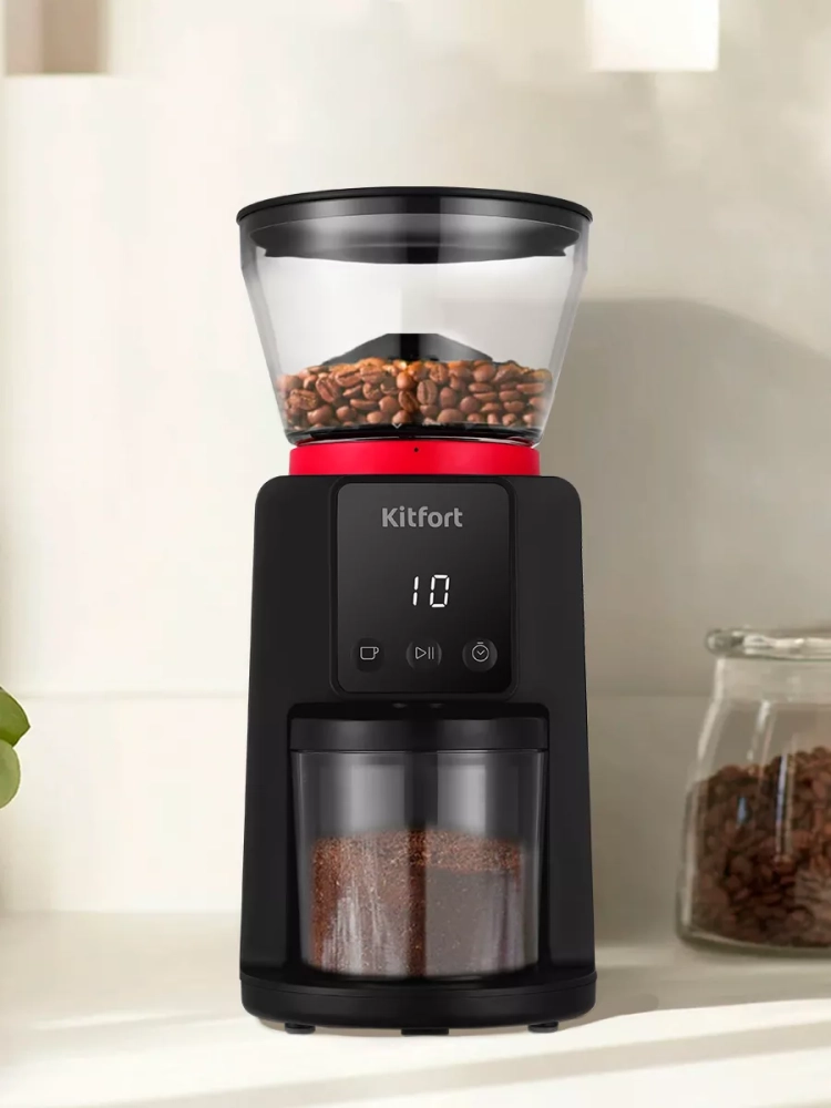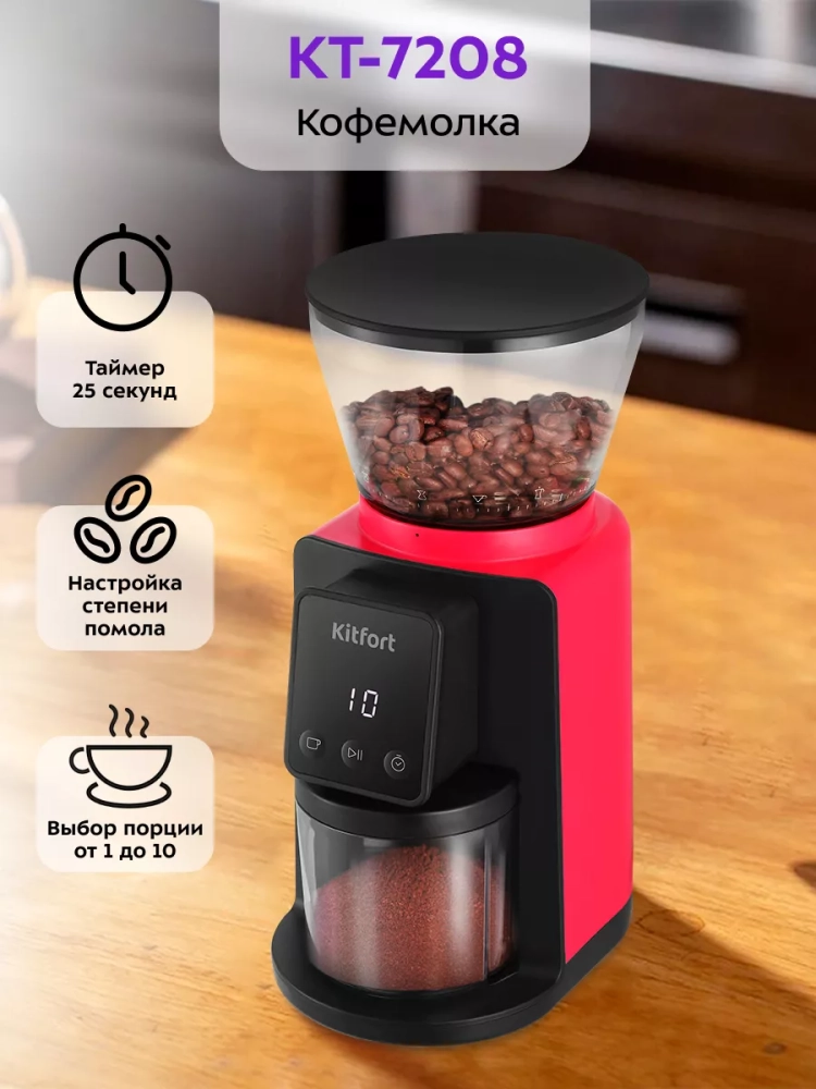 Жерновая кофемолка Kitfort КТ-7208 предназначена для помола кофейных зерен. Она оснащена коническими жерновами из нержавеющей стали.