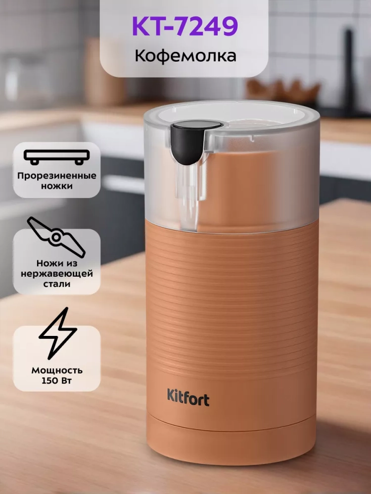 Кофемолка электрическая Kitfort КТ-7249 — это надежный выбор среди кухонных приборов благодаря своей функциональности и простоте использования.