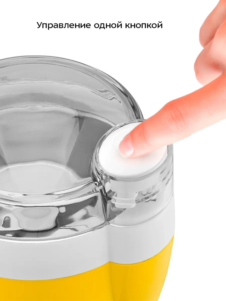 Кнопка включения расположена сверху кофемолки. Пока вы удерживаете кнопку включения, устройство работает. При отпускании данной кнопки помол прекратится. Защитный механизм не позволит включить кофемолку, если крышка установлена неправильно или не установлена.