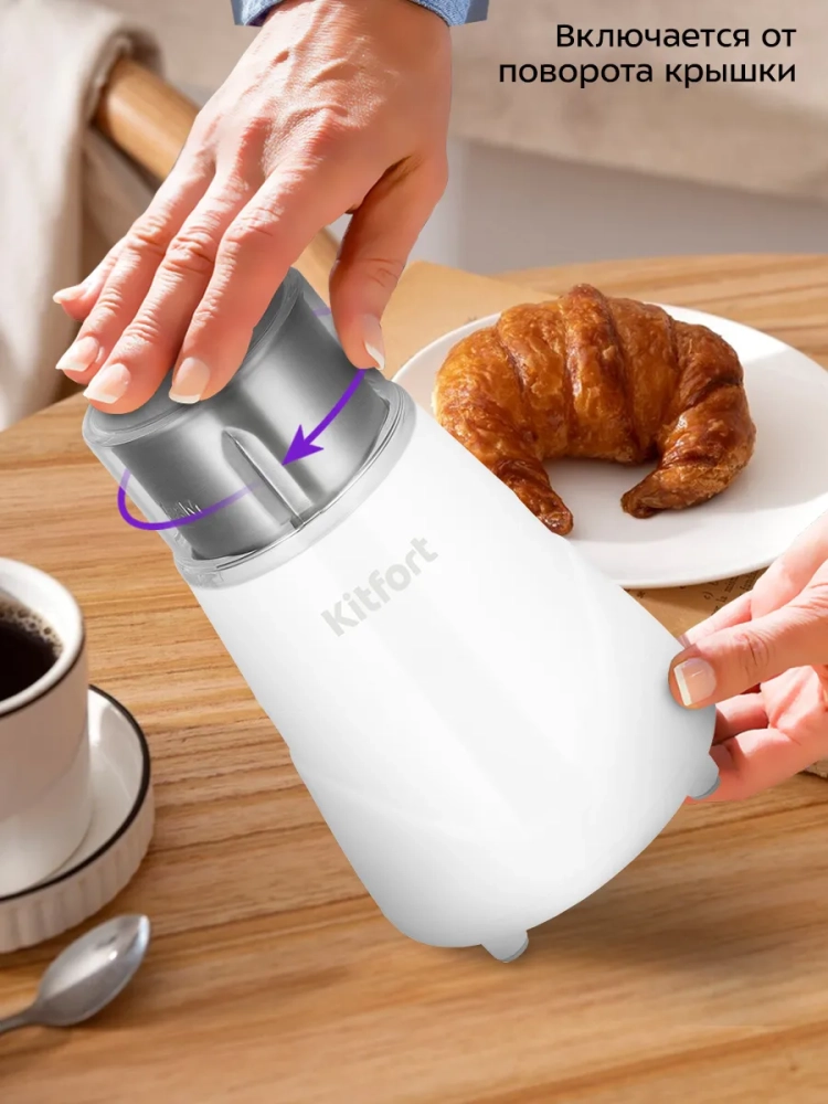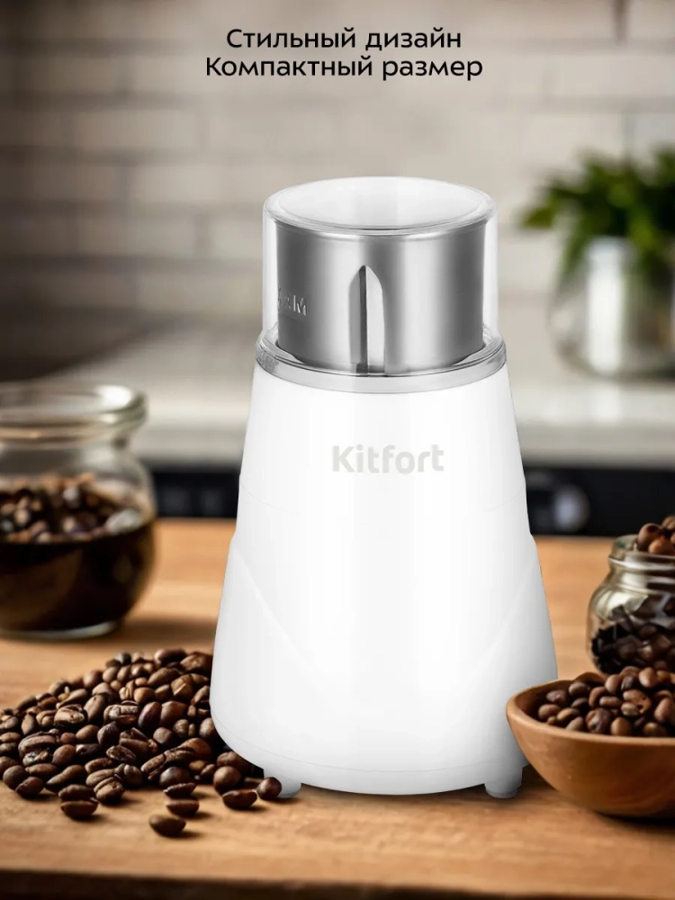 Кофемолка Kitfort КТ-7482 предназначена для помола кофейных зерен. Кофемолка укомплектована чашей из нержавеющей стали с блоком ножей и прозрачной крышкой из пластика, которая позволяет следить за степенью помола. Ножи выполнены из нержавеющей стали. С помощью съемной чаши удобно извлекать молотый кофе. Прорезиненные ножки придают прибору устойчивость во время работы.