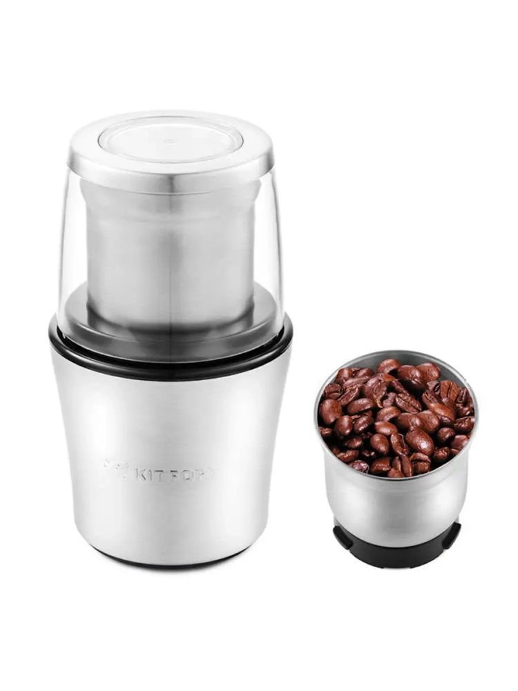 Электрическая кофемолка Kitfort отличается высокой производительностью и надежностью. Её металлический контейнер для зерна вмещает достаточное количество кофе для приготовления нескольких порций. Контейнеры легко снимаются и чистятся, что упрощает уход за техникой.