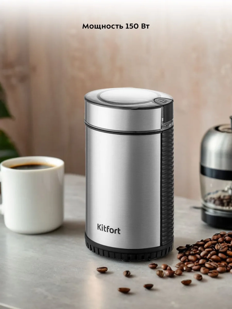 Кофемолка Kitfort КТ-7109 предназначена для помола кофейных зерен и измельчения специй. В чаше установлены ножи с двумя лезвиями для эффективного измельчения зерен кофе и специй. Эти ножи при включении кофемолки быстро вращаются и рубят зерна. Степень помола зависит от продолжительности работы. Кофемолка укомплектована крышкой с прозрачным окошком для наблюдения за процессом измельчения.
