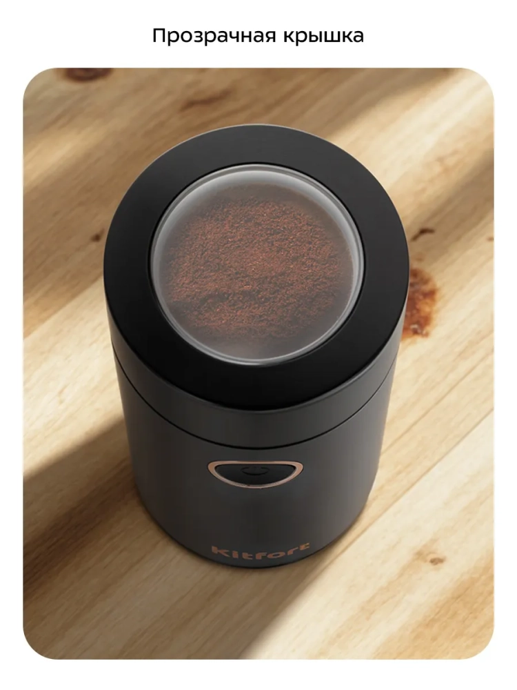 Степень помола зависит от продолжительности работы устройства. Через прозрачную крышку можно наблюдать за процессом измельчения.