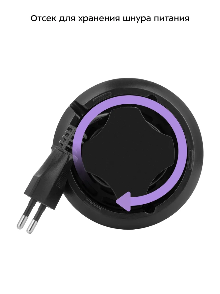 Кофемолка оснащена переключателем безопасности: она не включится, если крышка будет не установлена или установлена неправильно. На дне устройства есть отсек для хранения шнура питания.