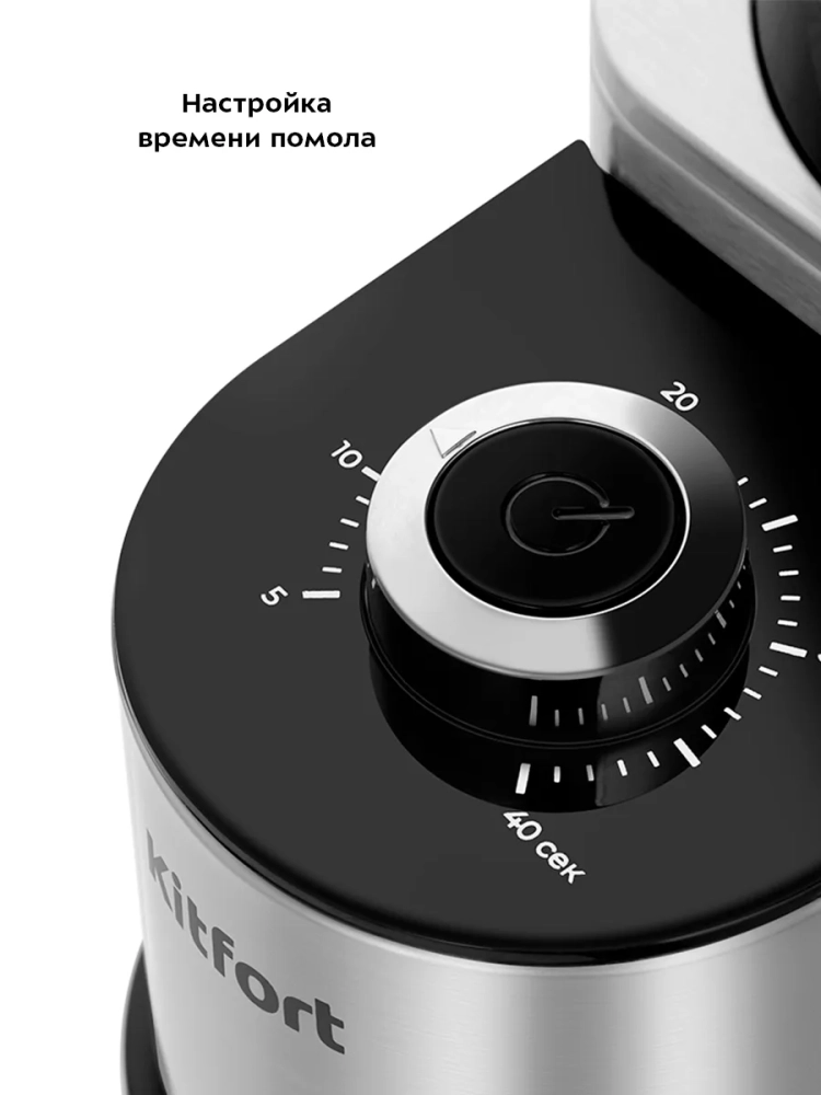 В данной кофемолке есть регулировка времени помола, которая позволяет устанавливать время помола от 5 до 40 секунд.