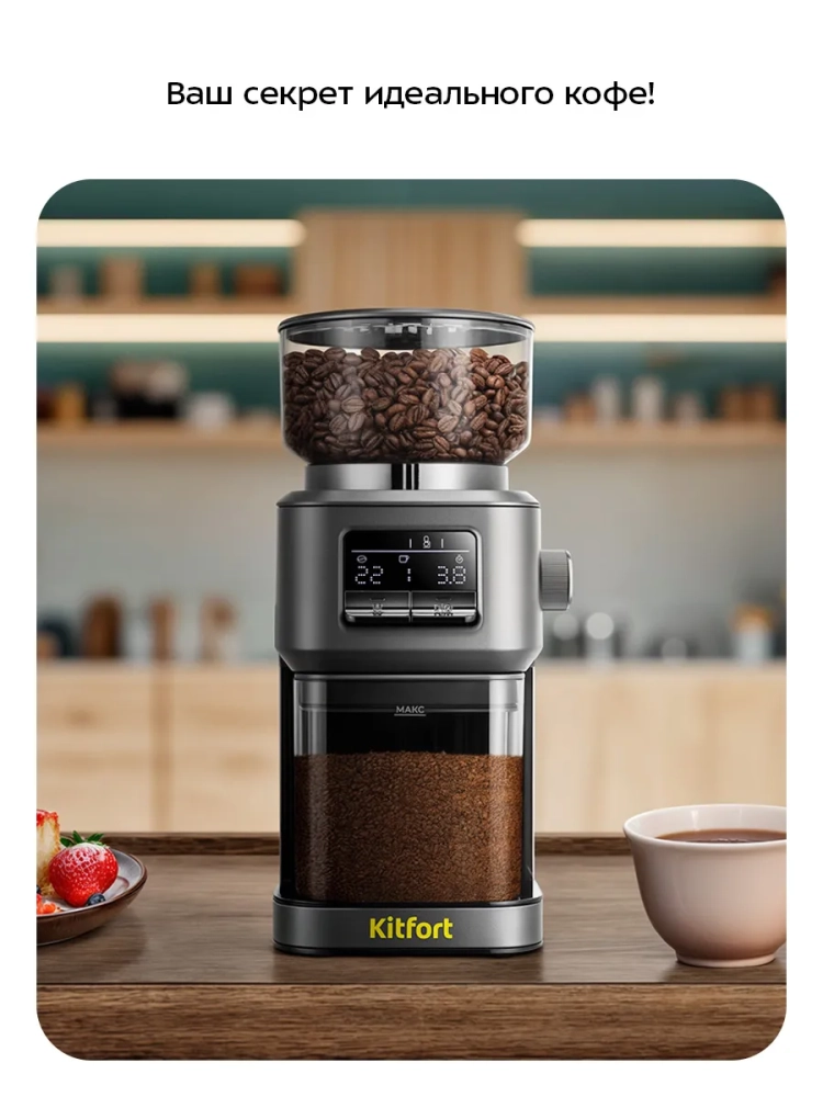 Жерновая кофемолка КТ-7555 предназначена для помола кофейных зерен. Она оснащена коническими жерновами из нержавеющей стали.