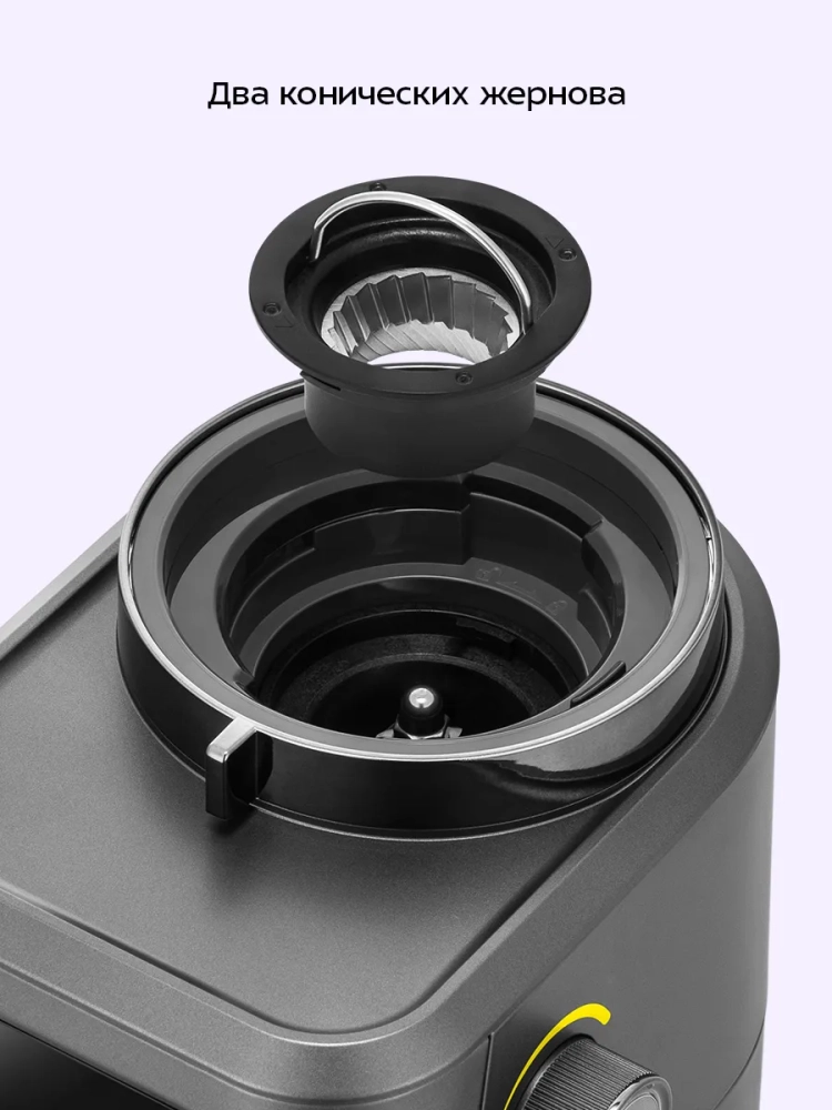 Жерновая кофемолка дает равномерный помол и позволяет настроить его степень: от мелкого — для эспрессо в рожковой кофеварке, до крупного — для кофе во френч-прессе. Равномерный помол положительно влияет на вкус кофе. При помоле в жерновой кофемолке кофе не перегревается, как это происходит в роторных кофемолках. Вы можете выбрать, какое количество зерен требуется cмолоть за один раз. Кофемолка cмелет нужное количество кофе и автоматически отключится.