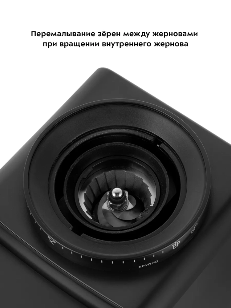 Жерновая кофемолка дает равномерный помол и позволяет настроить его степень: от мелкого — для кофеварки эспрессо, до крупного — для френч-пресса. Равномерный помол важен для кофеварок эспрессо: при неравномерном помоле вкус заваренного кофе портится. При помоле в жерновой кофемолке кофе не перегревается, как это происходит в роторных кофемолках. Вы можете выбрать, какое количество зерен требуется намолоть за один раз. Кофемолка намелет нужное количество кофе и автоматически отключится.