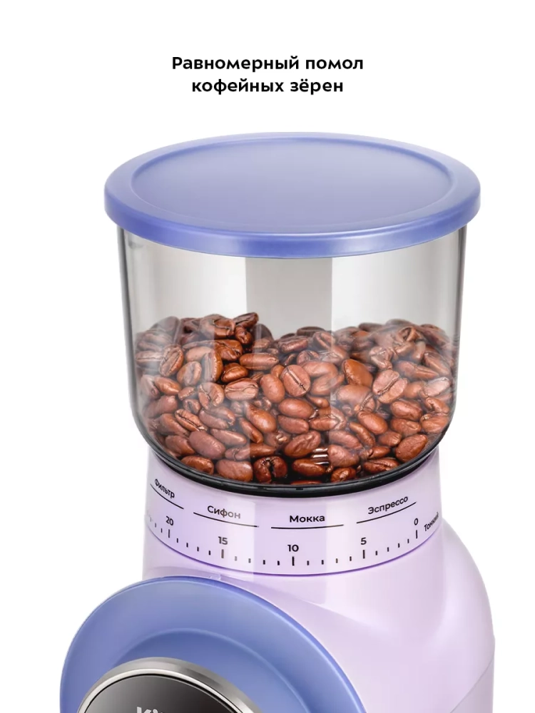 Жерновая кофемолка Kitfort КТ-7210 предназначена для помола кофейных зерен. Она оснащена коническими жерновами из углеродистой стали.