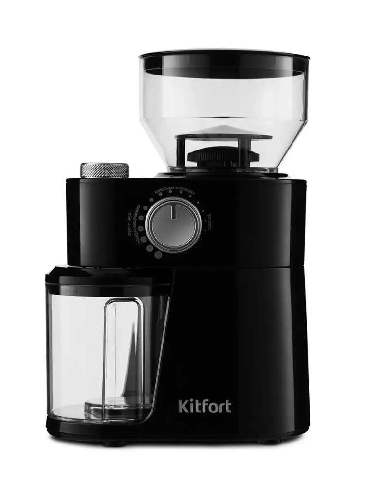 Жерновая кофемолка Kitfort КТ-741 предназначена для помола кофейных зерен. Она оснащена плоскими металлическими жерновами из углеродистой стали.