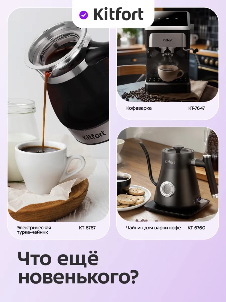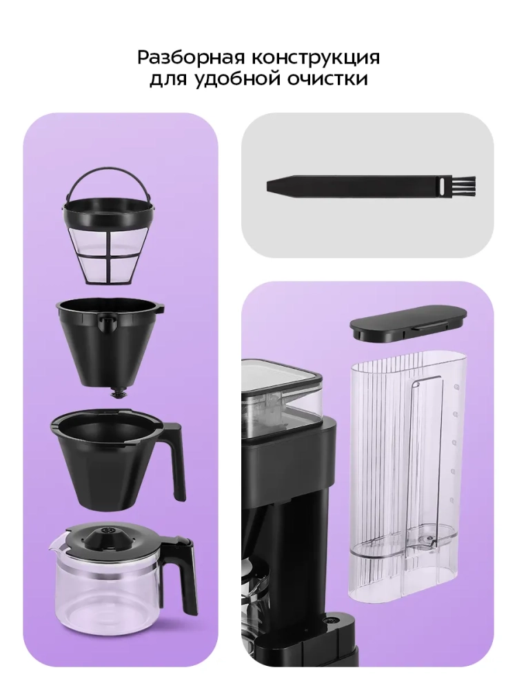 Капельная кофемашина Kitfort Kitfort КТ-7371 готовит ароматный кофе из молотого кофе или из кофейных зерен. Встроенная кофемолка с коническими жерновами автоматически измельчит кофейные зерна и подаст их сразу в фильтр. Вы можете выбрать степень помола. Также вы можете включить только помол кофейных зерен и использовать молотый кофе для приготовления кофе другим способом, не в капельной кофемашине.