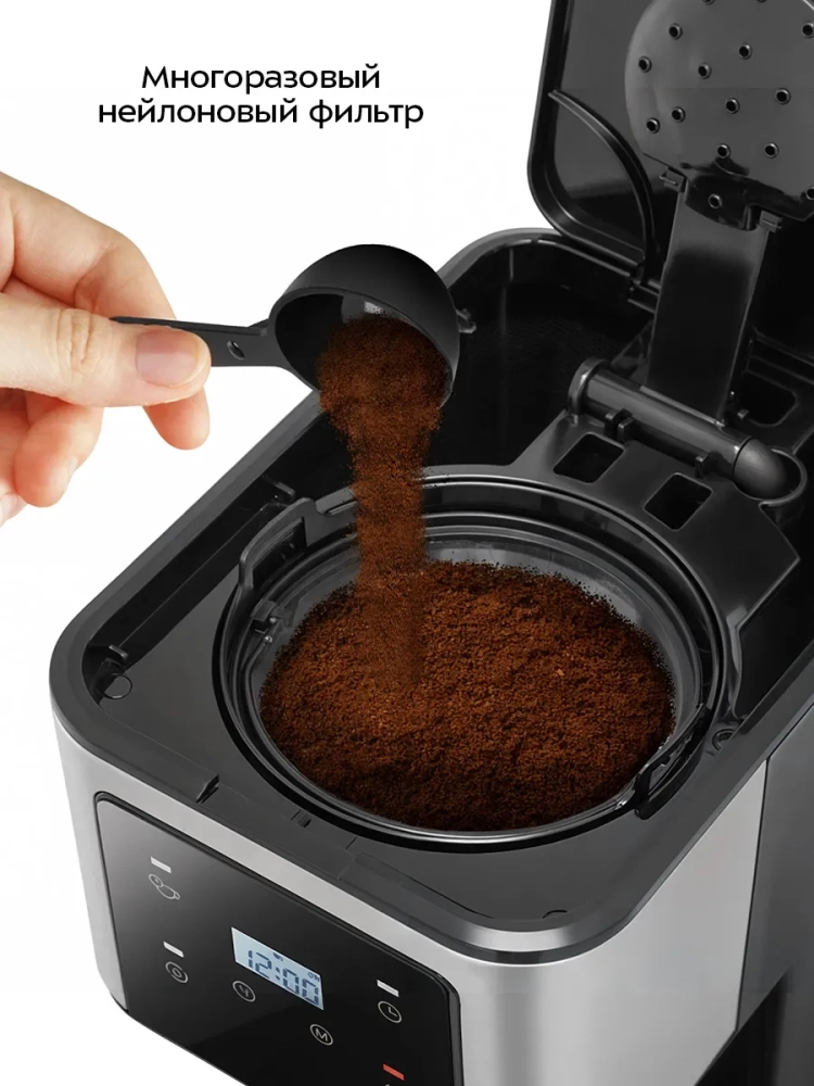 Функция отложенного старта позволит начать приготовление кофе в заданное время. Установите время приготовления, и к моменту, когда вы проснетесь, вас будет ждать ароматный свежезаваренный кофе.