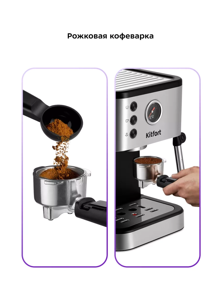 Кофеварка Kitfort КТ-7295 поможет приготовить кофе эспрессо, капучино или латте, а также множество других видов кофе на ваш вкус. С помощью стимера вы можете приготовить молочную пенку, а также подогреть паром остывший чай или молоко.
