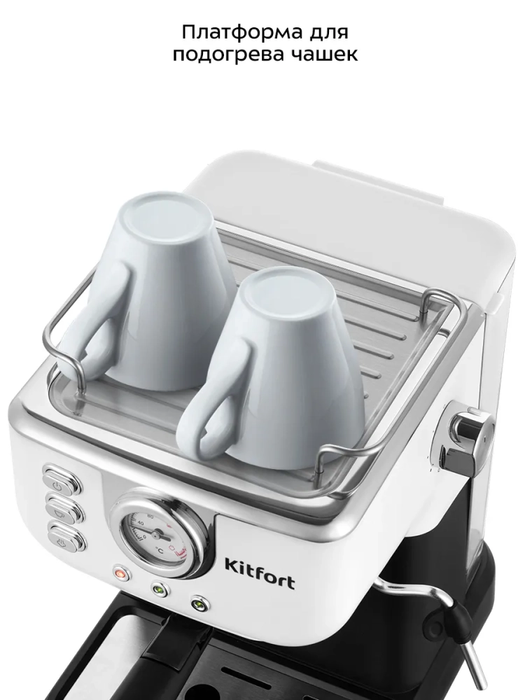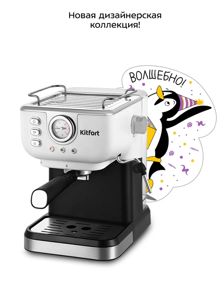 Рожковая кофеварка Kitfort КТ-7506 поможет приготовить кофе эспрессо, капучино или латте, а также множество других видов кофейных напитков на ваш вкус. С помощью рожковой кофеварки вы можете подогреть паром остывший чай или молоко.