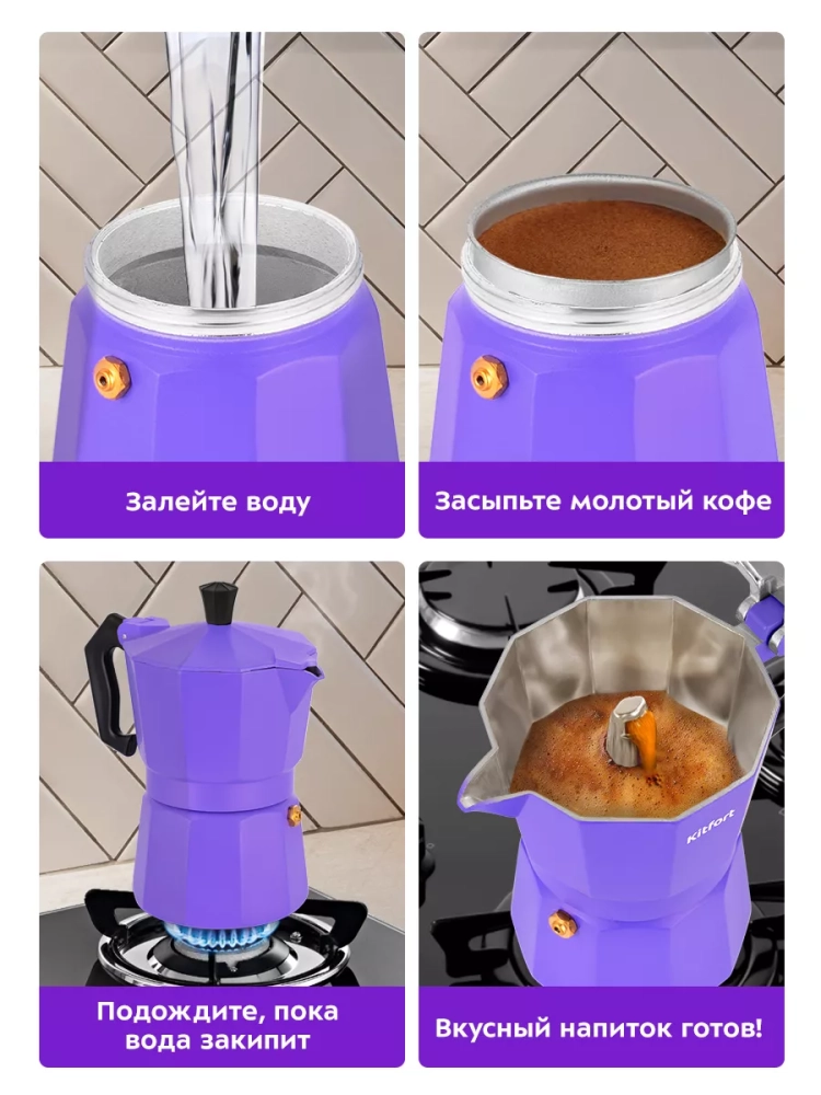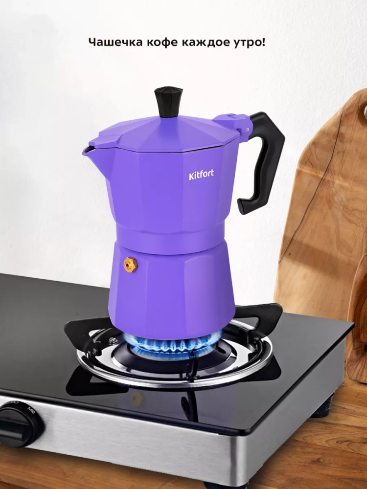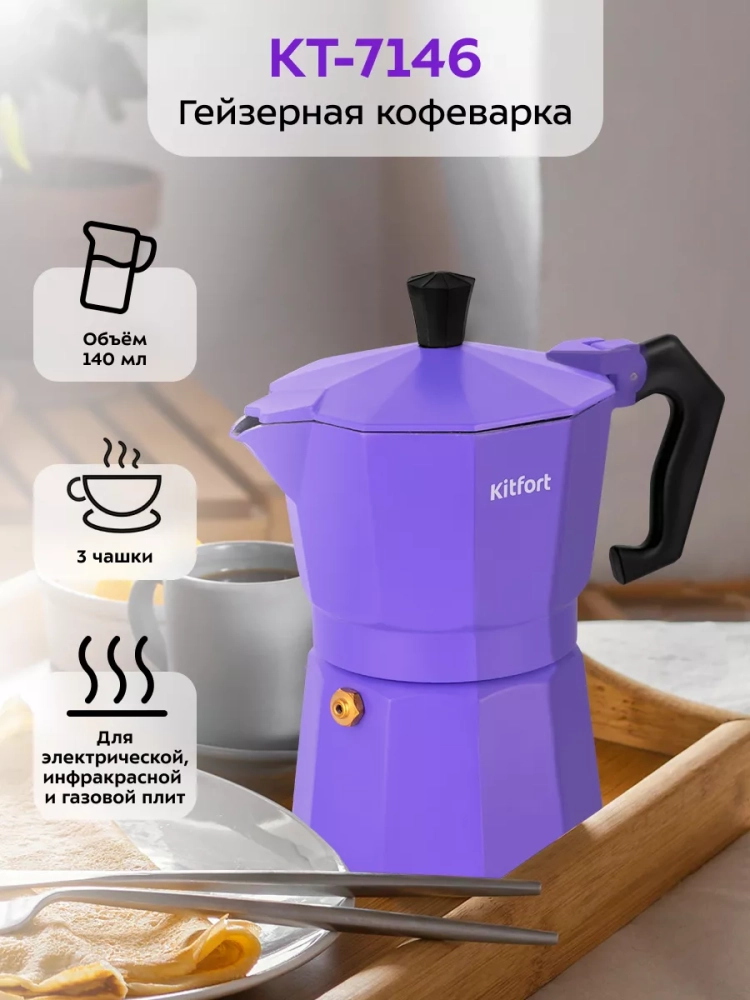 Гейзерная кофеварка Kitfort КТ-7146 поможет приготовить черный кофе.