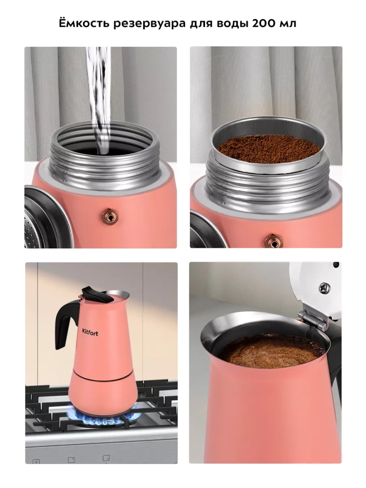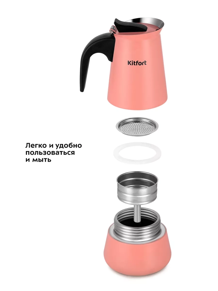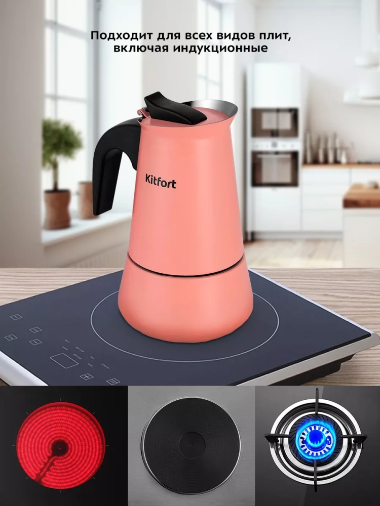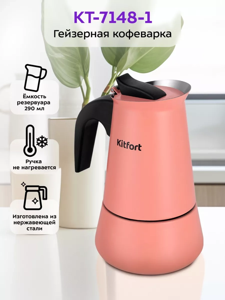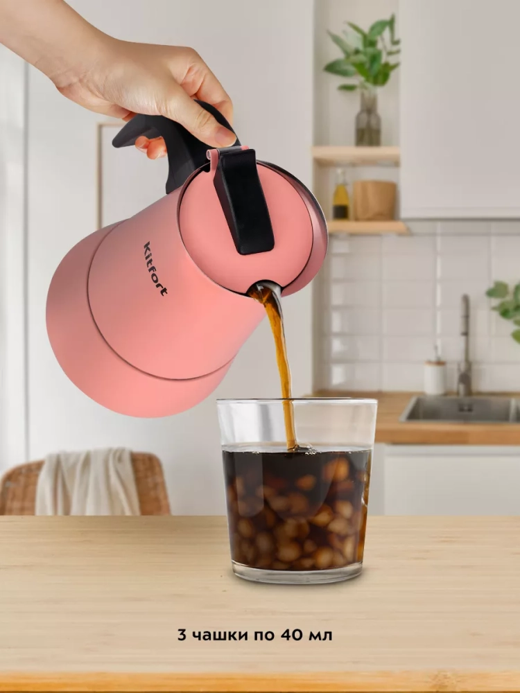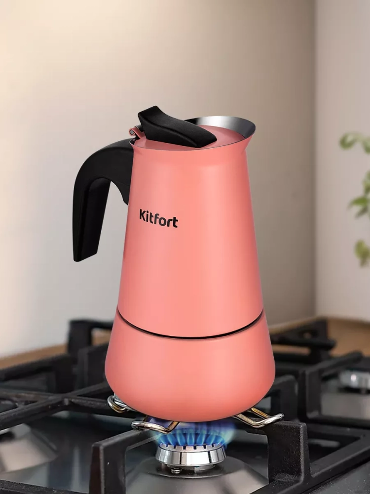 Гейзерная кофеварка Kitfort КТ-7148 поможет приготовить черный кофе.