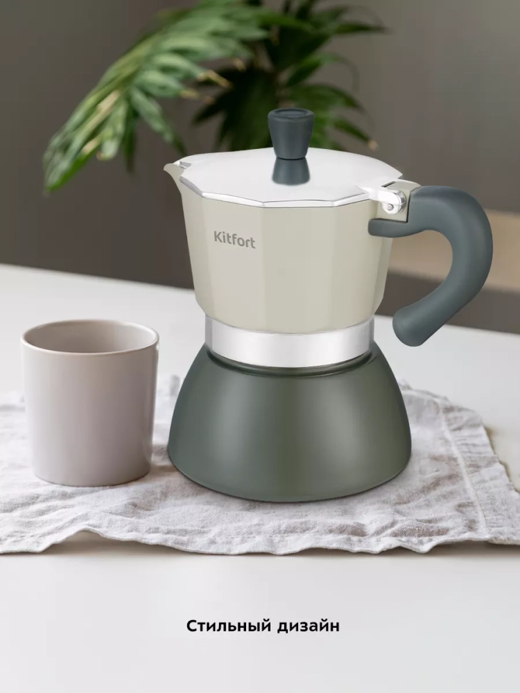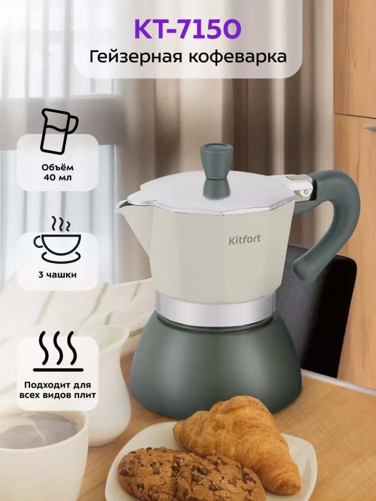 Гейзерная кофеварка Kitfort КТ-7150 поможет приготовить черный кофе.