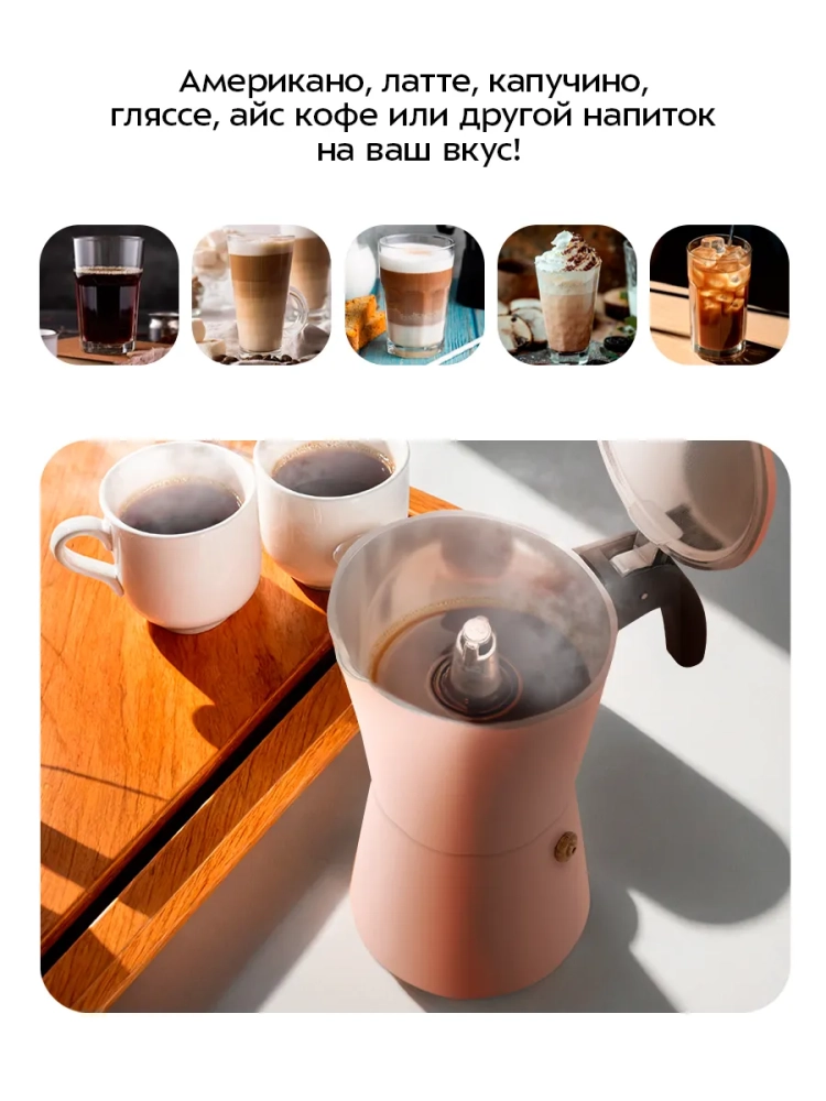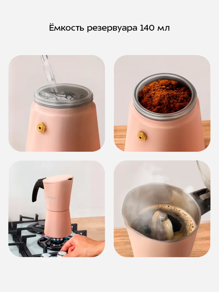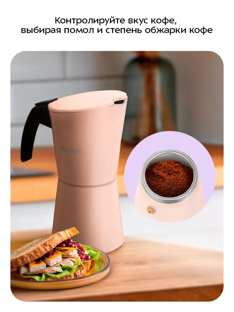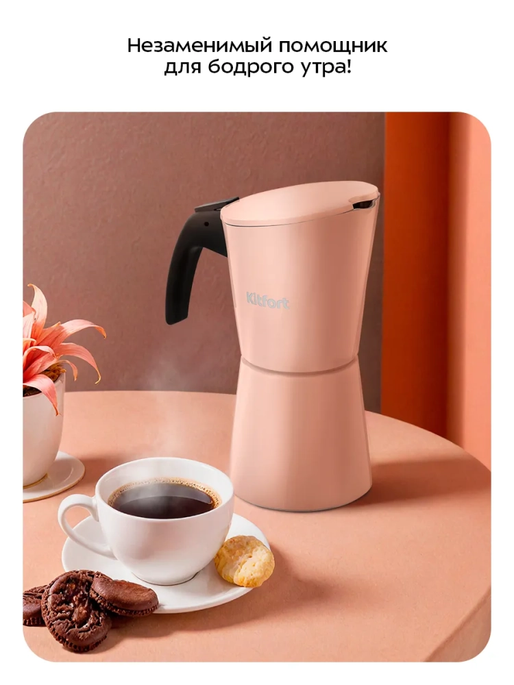 Гейзерная кофеварка Kitfort КТ-7585 поможет приготовить черный кофе.