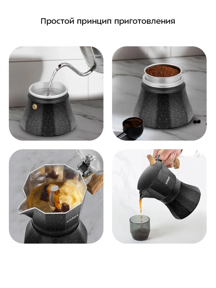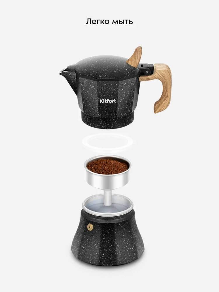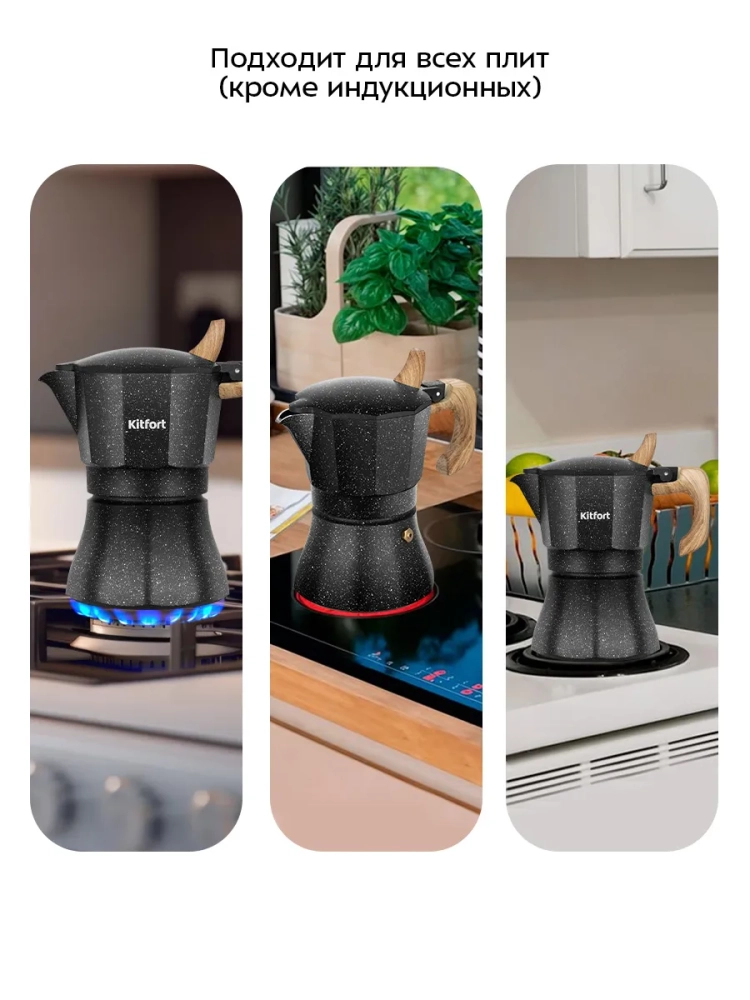 Гейзерная кофеварка Kitfort КТ-7587 поможет приготовить черный кофе.