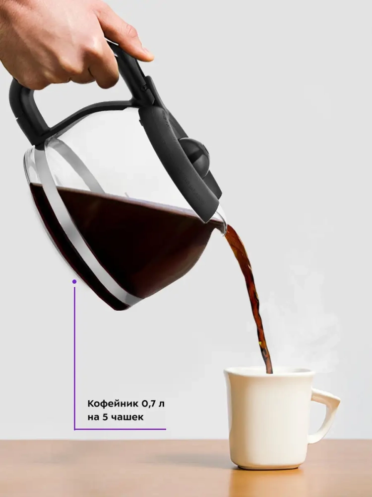 Электрическая кофемашина мощностью 700 Вт и объемом 0.7 л — идеальное решение для вашей кухни. Эта капельная кофеварка сочетает в себе функциональность и стиль, обеспечивая быстрое приготовление кофе дома. Кофемашина оснащена стеклянным кофейником, который сохраняет аромат и вкус вашего любимого напитка. Пластиковый корпус и удобная кнопка включения делают её использование простым и комфортным.