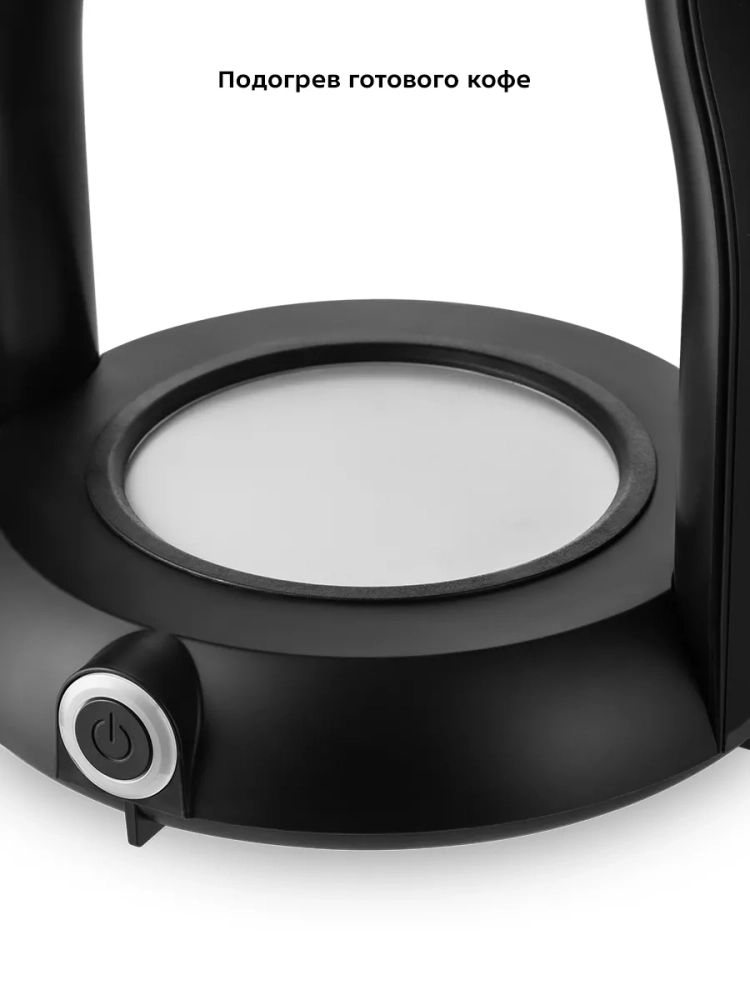 В капельной кофеварке вода доводится до температуры 80–90 *С, после чего медленно поступает в фильтр с молотым кофе. Пройдя через него, она попадает в кофейник. По окончании приготовления напитка кофеварка перейдет в режим подогрева. Платформа с подогревом, на которой стоит кофейник с готовым кофе, будет горячей в течение 15 минут, затем прибор выключится.
