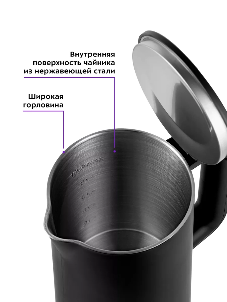 Нагревательный элемент (ТЭН) у этой модели чайника скрытый и находится в донной части. Такая конструкция препятствует образованию накипи, облегчает уход и значительно снижает шум при нагревании воды.