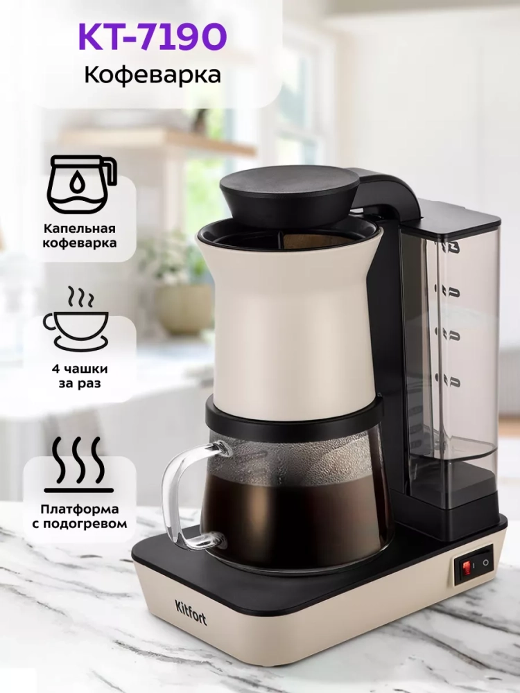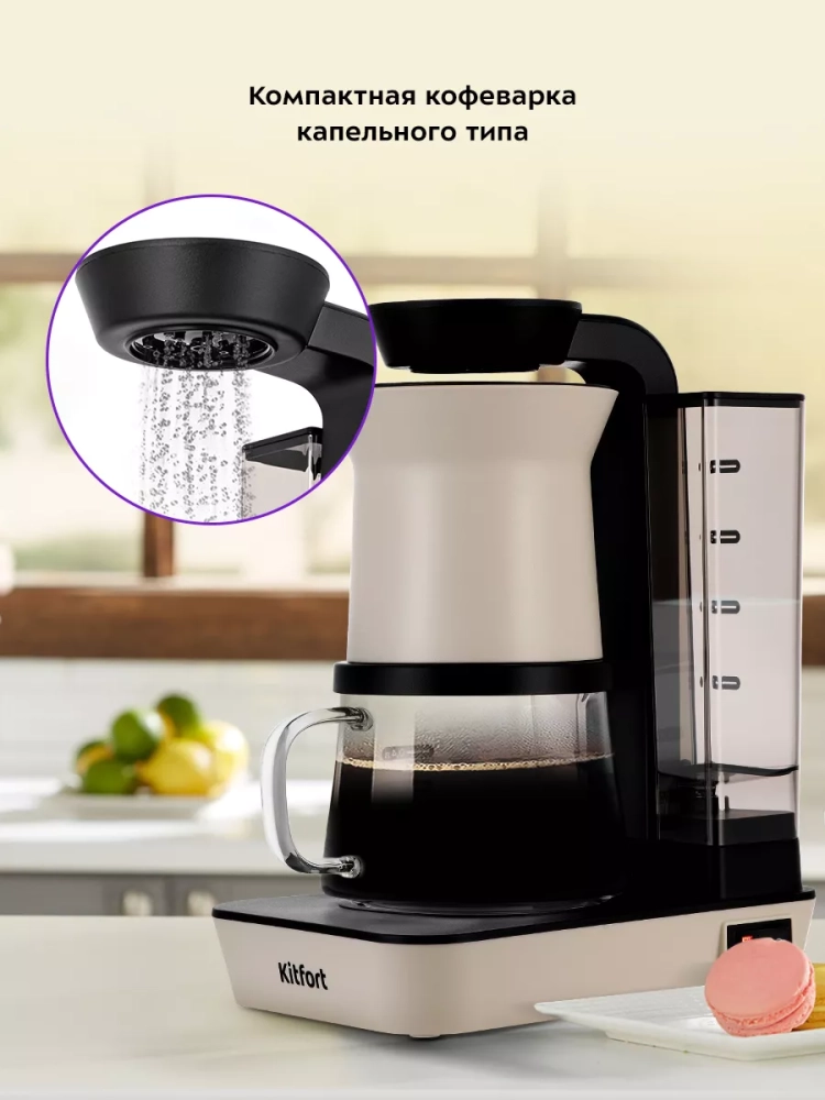 Таким образом, кофеварка капельная Kitfort – это идеальное сочетание классики и современных технологий, которое удовлетворит потребности даже самых требовательных ценителей кофе.