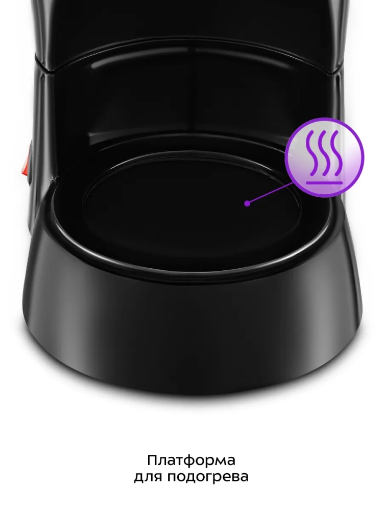 Управление кофеваркой очень простое и осуществляется при помощи одной кнопки. Прибор компактный и не займет много места на вашей кухне.