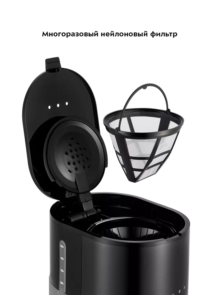 Воронка кофеварки оборудована противокапельной системой — затвором, приостанавливающим подачу кофе при вынимании кофейника из кофеварки. Вы можете налить кофе в чашку, не дожидаясь окончания приготовления.