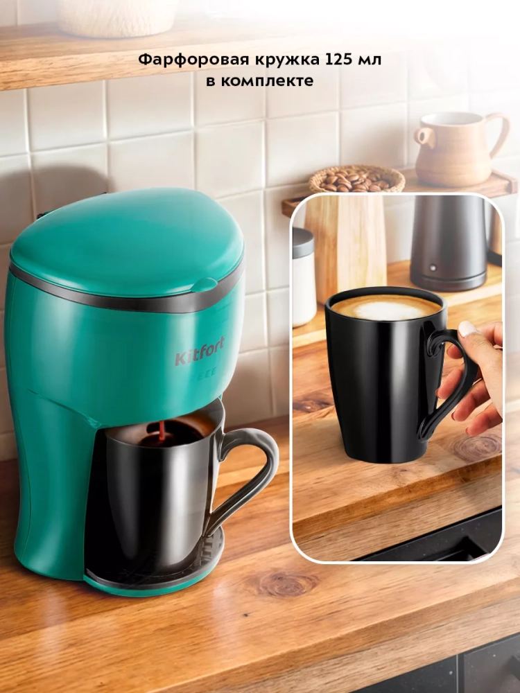 Капельная кофеварка Kitfort КТ-7310 готовит ароматный черный кофе из молотого кофе. Кофеварка отличается компактностью и поместится на любой кухне. Она позволяет легко и быстро приготовить кофе на одного человека.