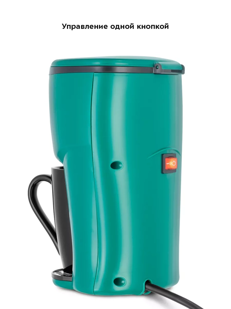 Кофеварка КТ-7310 очень проста в использовании и управляется одной кнопкой. В комплекте идет фарфоровая кружка для приготовленного напитка.