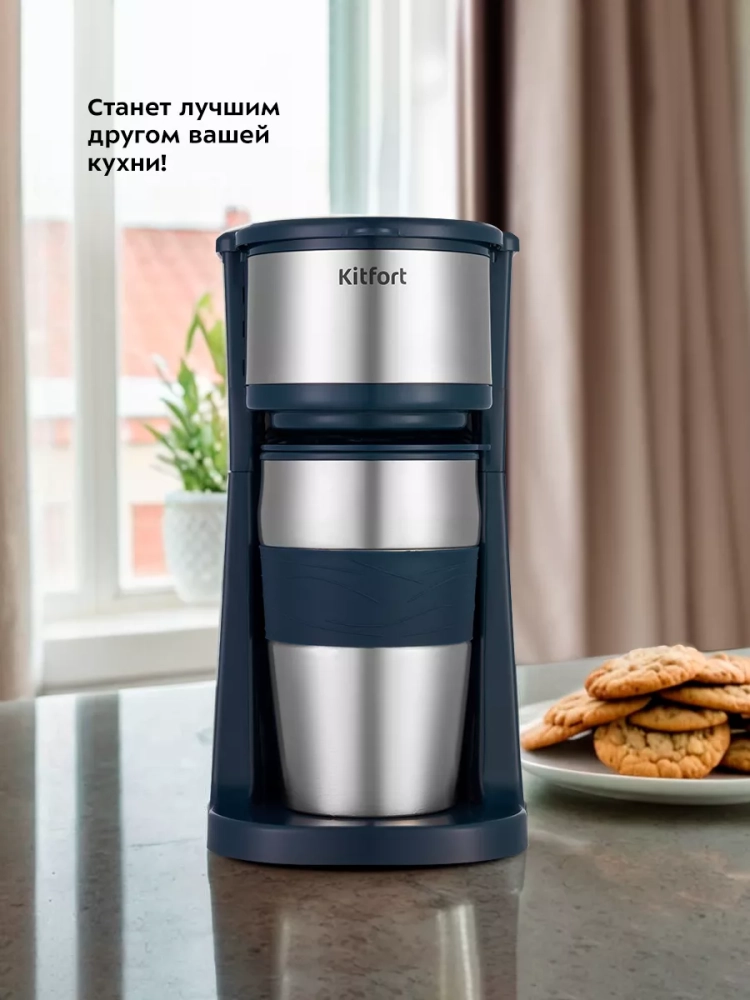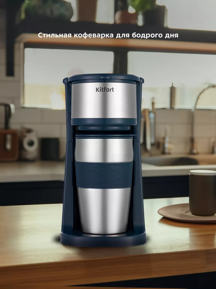 Кофеварка капельная электрическая КТ-7315 - 750 Вт от Kitfort – это идеальное решение для любителей ароматного черного кофе дома. Эта кофеварка электрическая позволяет приготовить напиток из молотого кофе всего одним нажатием кнопки. Процесс приготовления прост: горячая вода медленно проходит через фильтр с молотым кофе, после чего попадает в термокружку. Термокружка выполнена из нержавеющей стали и оснащена силиконовой вставкой, что предотвращает ожоги и обеспечивает удобство использования. Крышка термокружки имеет специальное отверстие для питья, которое можно закрыть при необходимости, например, во время ходьбы. Это делает кофеварку капельную особенно удобной для тех, кто всегда в движении. Многоразовый фильтр изготовлен из нейлона и рассчитан на длительное использование без замены. Он вмещает до 20 граммов молотого кофе, а резервуар для воды объемом 450 мл позволяет приготовить несколько чашек напитка за раз. Компактные размеры устройства делают его идеальным выбором для небольших кухонь или офисов. Кофеварка легкая и занимает минимум места на столе или полке. Она предназначена как для домашнего использования, так и для офиса. Эта кофеварка kitfort отличается надежностью и простотой эксплуатации благодаря продуманному дизайну и качественным материалам изготовления. Если вы ищете надежную кофеварку электрическую для молотого кофе с возможностью приготовления вкусного напитка быстро и без лишних хлопот – модель китфорт КТ-7315 станет отличным выбором. Не упустите возможность насладиться свежим ароматным кофе каждый день!