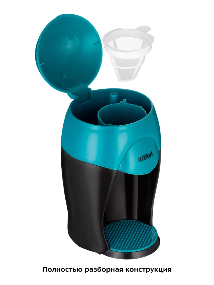 Кофеварка Kitfort отличается компактными размерами, что делает её идеальной для использования как дома, так и в офисе. Она легко впишется в интерьер любой кухни, не занимая много места. Встроенный резервуар для воды обеспечивает оптимальный объём для приготовления нескольких кружек кофе, а мерная шкала на корпусе позволяет точно контролировать количество воды.