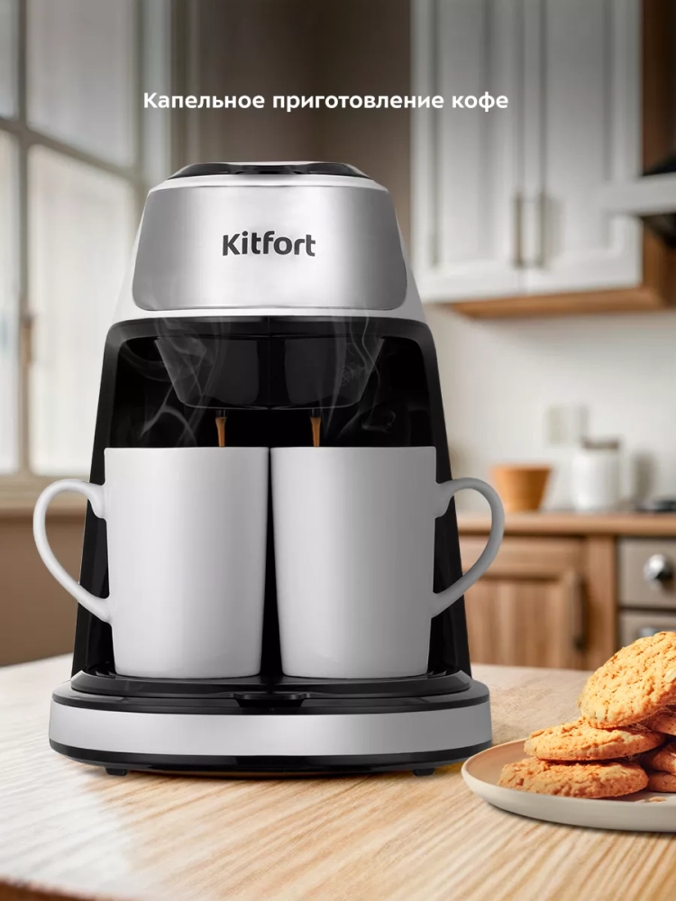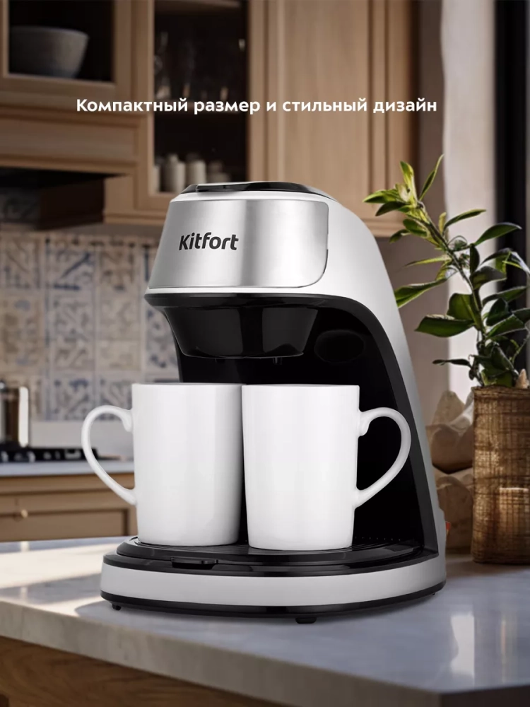 Эта мини кофеварка сочетает в себе функциональность и стиль. Она идеально подходит для использования дома или в офисе, обеспечивая вас свежим и ароматным кофе в любое время. Kitfort — это надёжная техника для кухни, которая прослужит вам долгие годы, радуя качеством и простотой использования.
