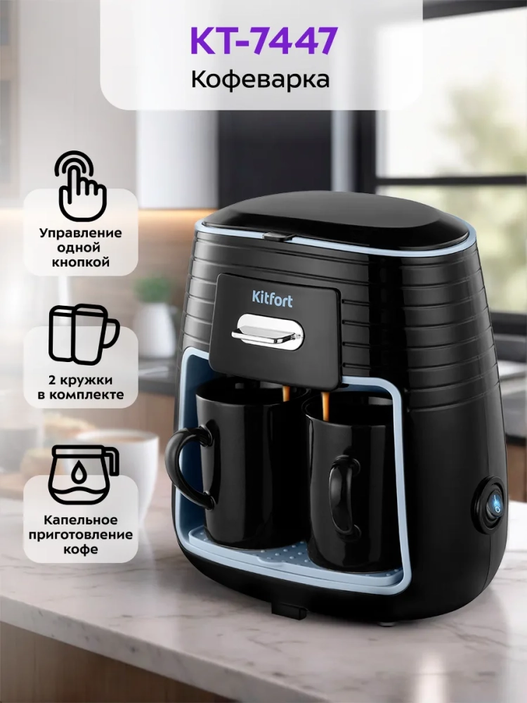Капельная кофеварка Kitfort КТ-7447 — это идеальное решение для любителей свежего кофе дома и в офисе. Эта электрическая кофемашина мощностью 450 Вт позволяет быстро и удобно приготовить ароматный черный кофе. Благодаря своей конструкции, кофеварка способна одновременно приготовить две порции кофе, что делает её незаменимой на кухне или в офисе.