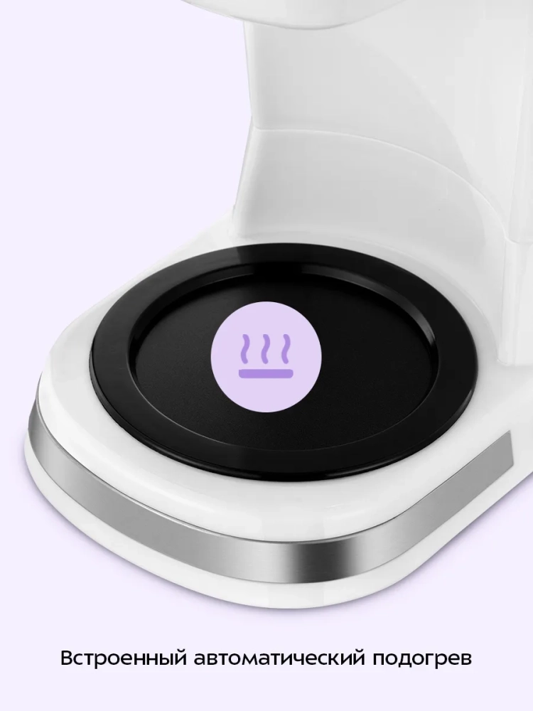 При приготовлении кофе вода нагревается, а затем подается в фильтр с молотым кофе. Пройдя через фильтр, кофе поступает в стеклянный кофейник. В месте установки кофейника находится платформа для подогрева. По завершении приготовления кофе включается подогрев.