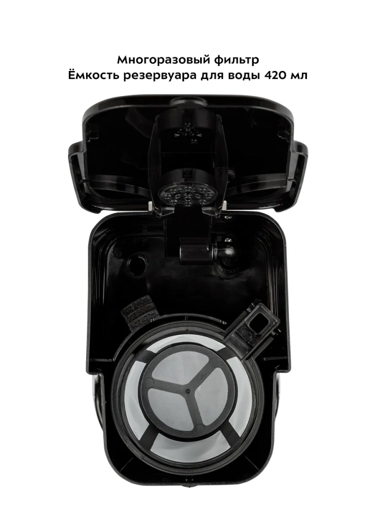 Эта кофеварка — отличный выбор для тех, кто ценит качество и надежность. Она оснащена фильтрами, которые обеспечивают чистоту воды и насыщенный вкус кофе. Пластиковый корпус делает её легкой и удобной в использовании, а компактные размеры позволяют разместить её в любом уголке кухни.