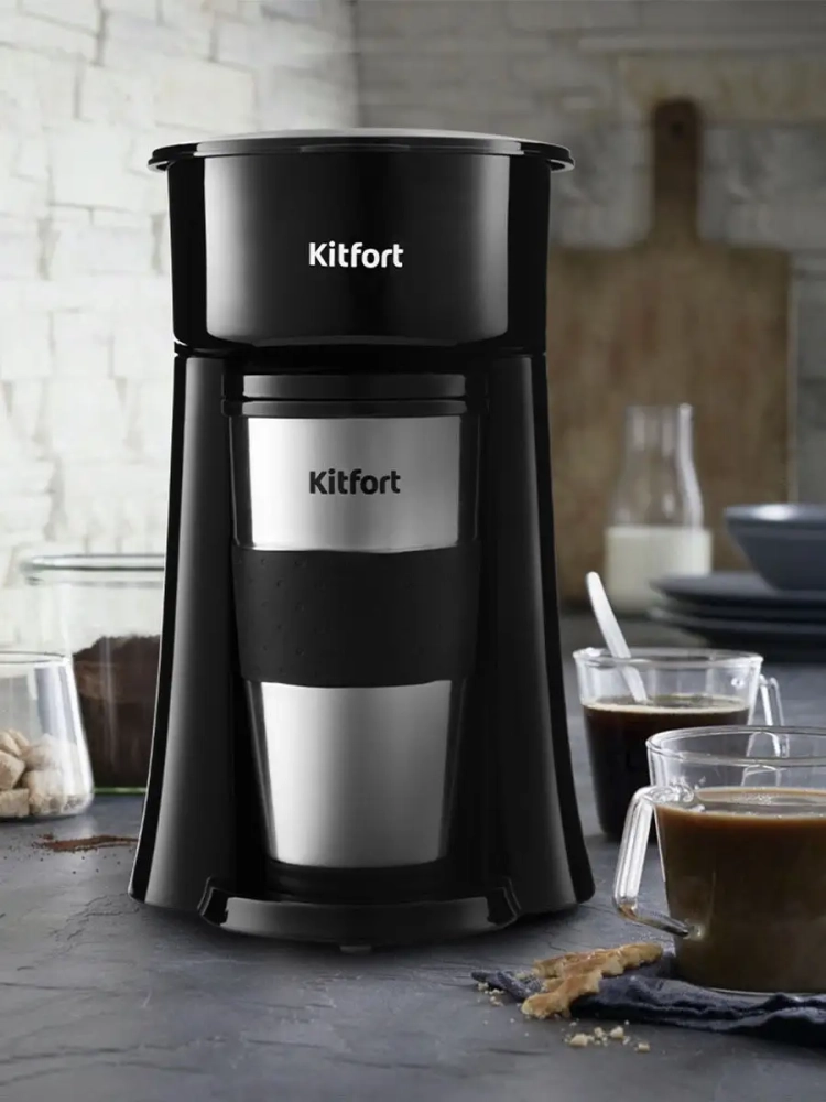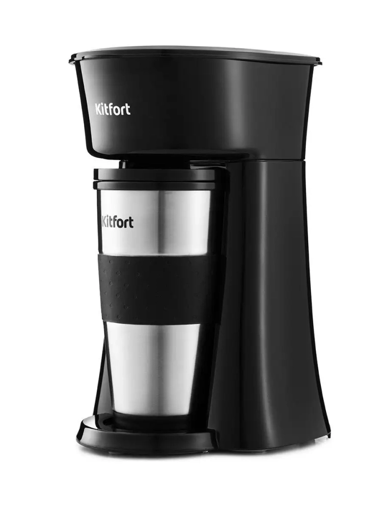 Капельная кофеварка с термокружкой Китфорт КТ-729 готовит ароматный кофе и управляется всего одной кнопкой. В комплекте к кофеварке идет термокружка, которую можно брать с собой. Термокружка выполнена из сочетания металла и пластика, на металлический корпус термокружки надето резиновое кольцо, чтобы не обжечься. Корпус кофеварки выполнен из пластика.
